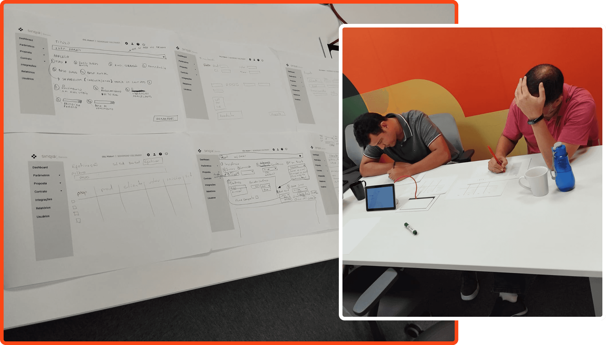 A atividade de co-criação, onde os próprios usuários desenharam os esboços das telas, nos permitiu entender expectativas, necessidades e formas de organizar melhor as informações na interface.